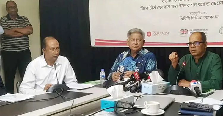 The meeting was organized by the Broadcast Journalists Center (BJSC) and the Reporters Forum for Election and Democracy (RFED), in collaboration with BBC Media Action. The session was chaired by BJSC chairman Rezwanul Haque Razar, with the secretary of the BJSC Trustee Board and RTV Head of News Elias Hossain moderating. Participants included Obaidur Rahman Shahin (acting president of the Bangladesh Federal Union of Journalists), journalist leader Kader Gani Chowdhury, RFED president Kazi Emad Uddin (Jebel), general secretary Golam Rabbani, and journalists from various media outlets.
