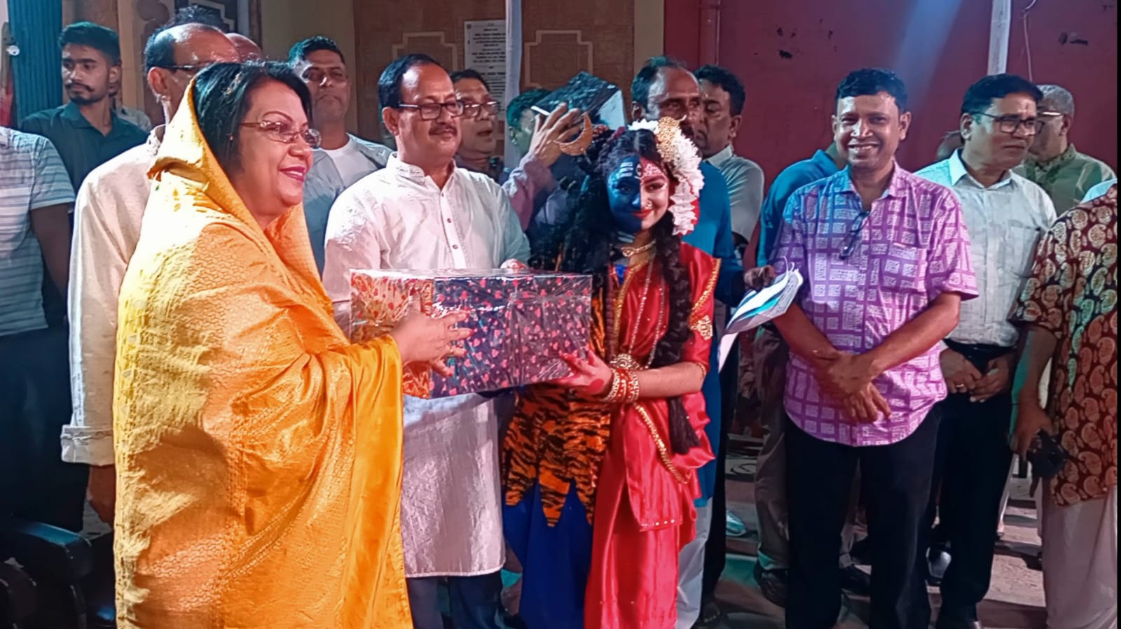 The program was presided over by temple committee president Dr. Omesh Sarkar. Among those present were District BNP convening committee members Advocate A. F. M. Nurtaaz Alam Bahar PP, Golam Kibria Saeed, Nasir Uddin Ahmed Jadu, Abdus Salam Badol, Rafiquddin Bhuiyan Habu, Manikganj Press Club President Jahangir Alam Biswas, Asaduzzaman Khan Dolon, Riaz Mahmud Harej, Advocate Arif Hossain Liton, Upazila BNP Joint General Secretary Advocate Saiful Islam Khan Rimon, District Mohila Dal President Sabiha Habib, District Jubo Dal Joint Conveners Md. Masud Parvez and Md. Mahbubul Alam Ujjal, Municipal Jubo Dal Senior Joint Convener Shamsuddin Ahmed Babu, Engineer Rakibul Islam Biswas Babu, District Swechchhasebak Dal Convener Advocate Jinnah Khan, District Chhatra Dal President Abdul Khalek Shuvo, General Secretary Sirajur Rahman Khan Sojib, along with leaders of BNP, its associate organizations, and members of the Puja Celebration Committee.
